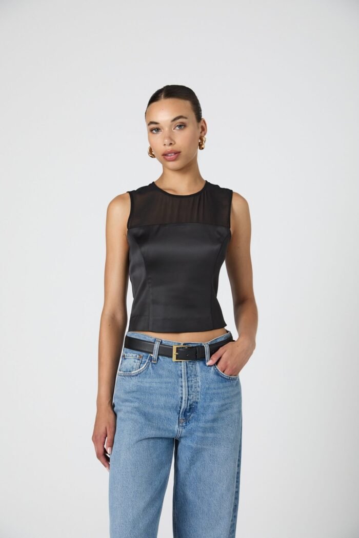 Be the first to review “Sheer Panel Satin Sleeveless Top” Cancel reply